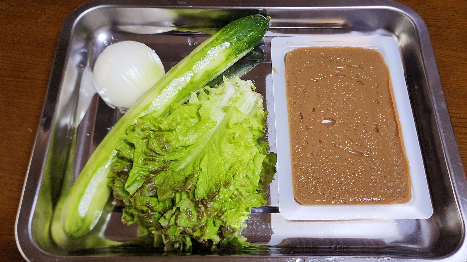 아삭한 채소를 같이 먹으면 맛있답니다.