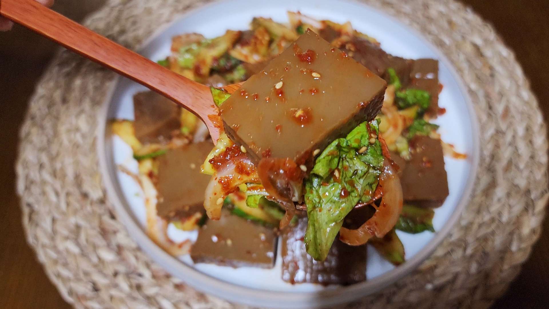 쫀득한 도토리묵과 매콤 달콤한 양념에 버무린