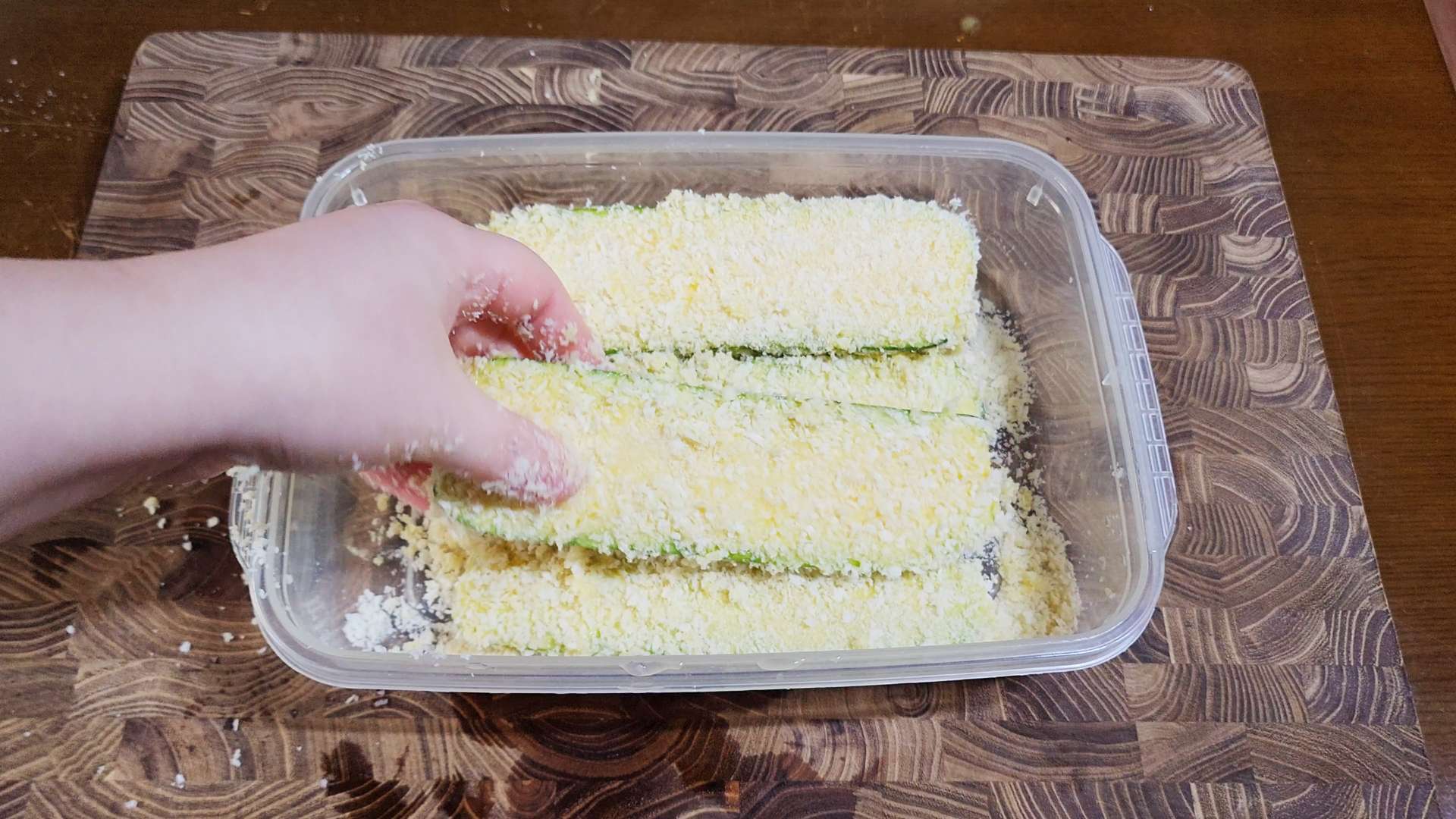 애호박에 부침가루> 계란물> 빵가루 순으로 묻혀줍니다.