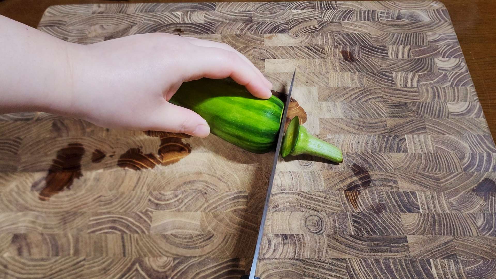 애호박은 키친타올로 눌러 물기를 제거해줍니다.