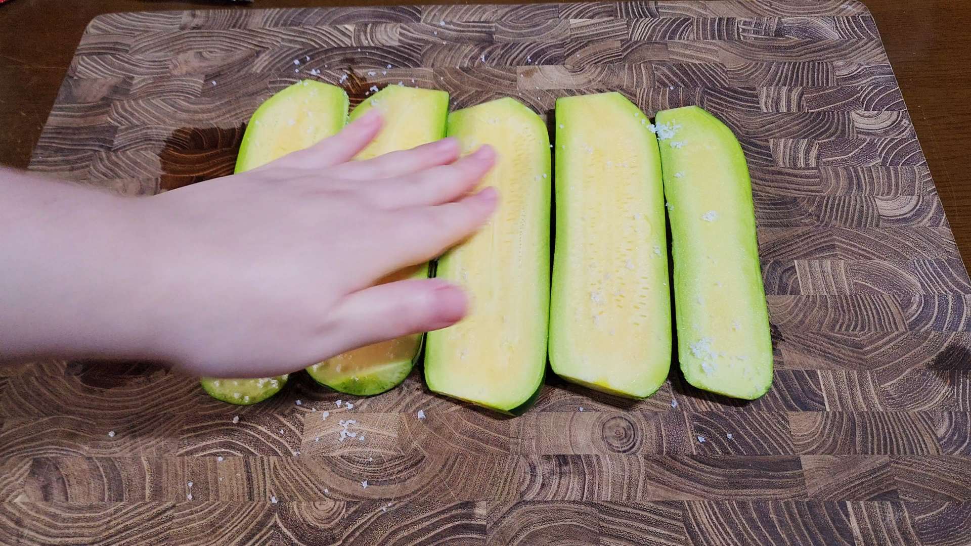 애호박은 소금을 뿌려 밑간해 줍니다.