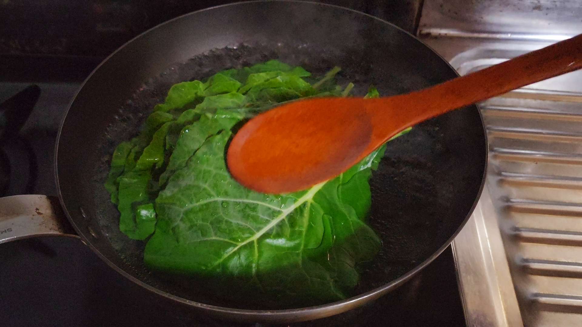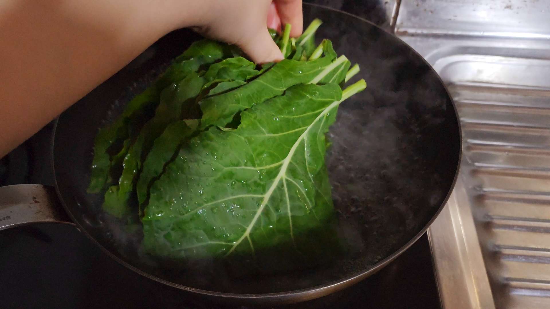 케일 20장을 넣고 1분 정도 데쳐줍니다.
