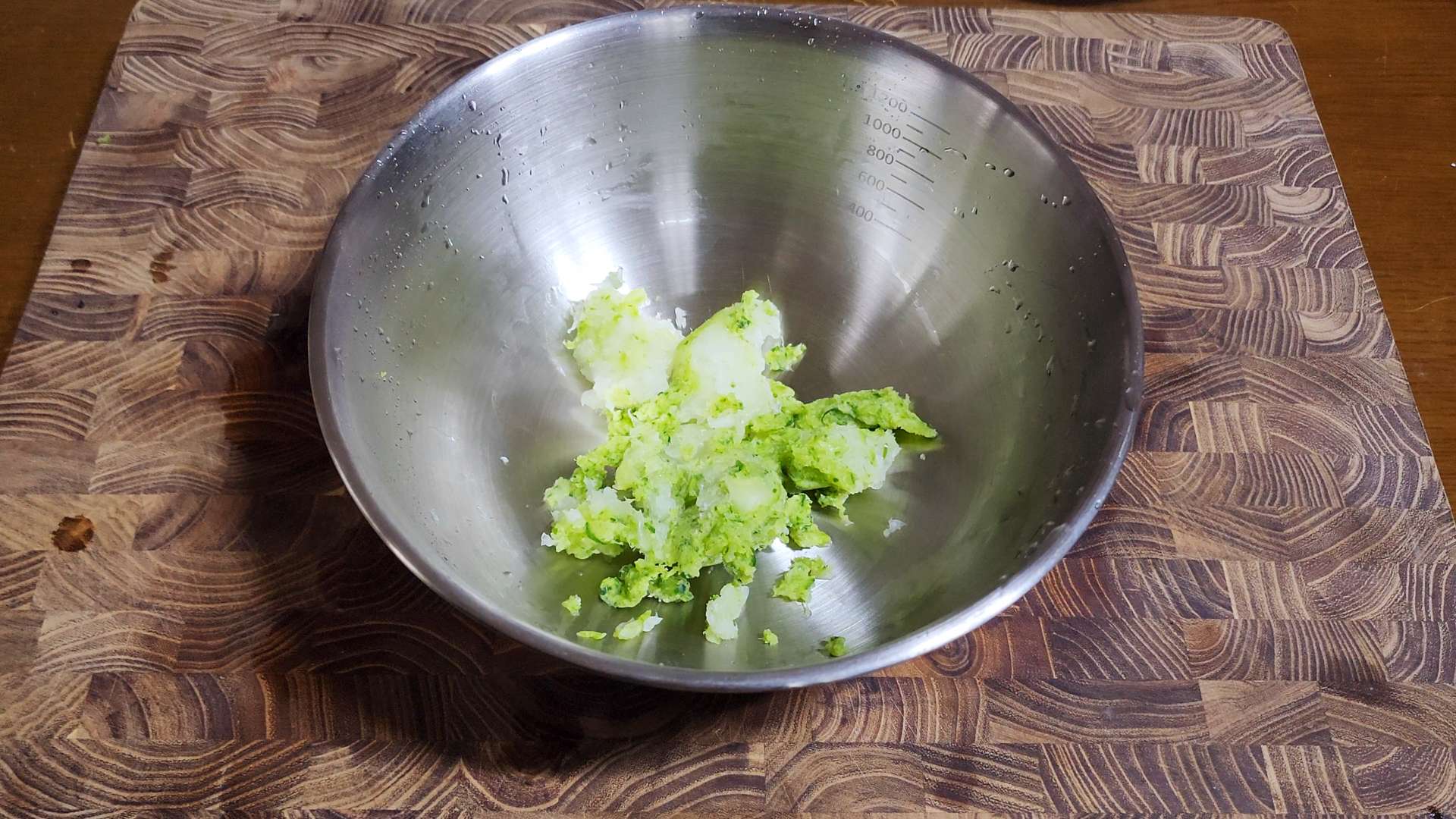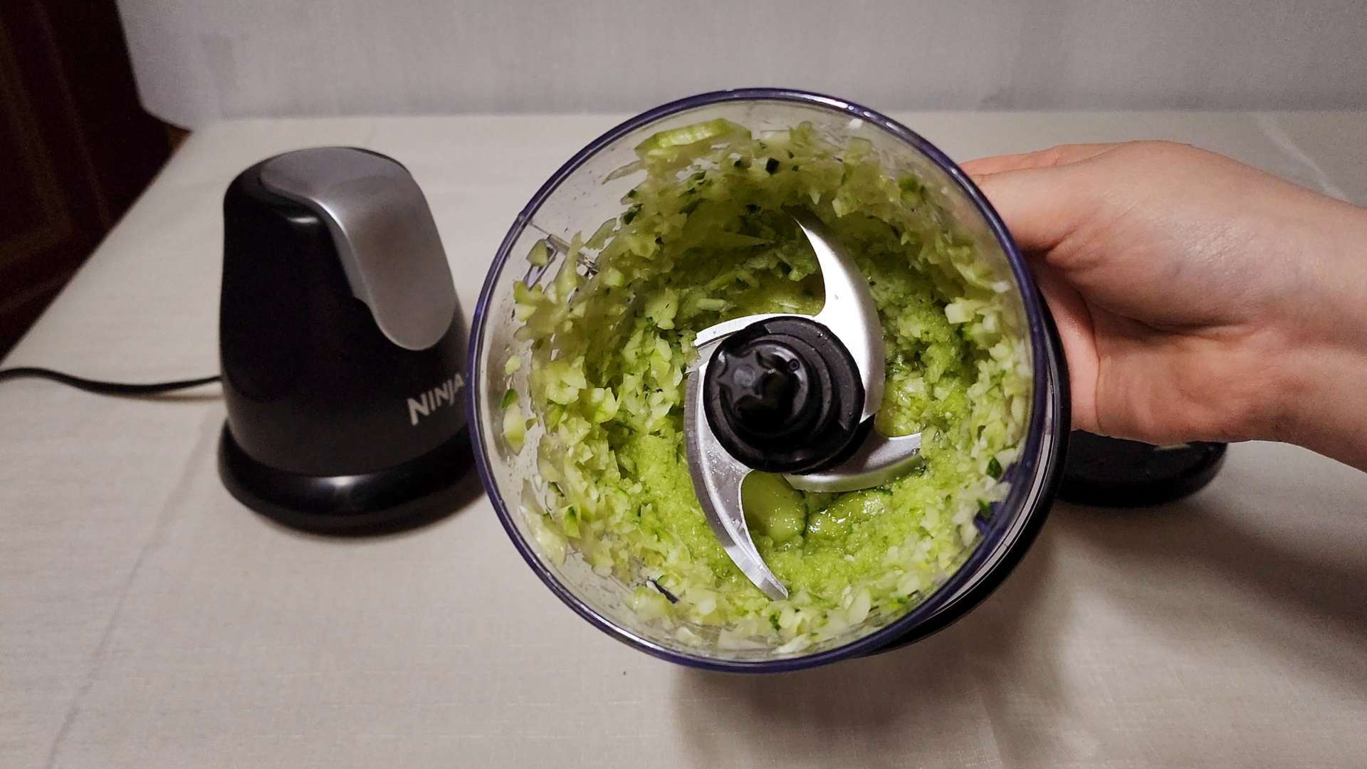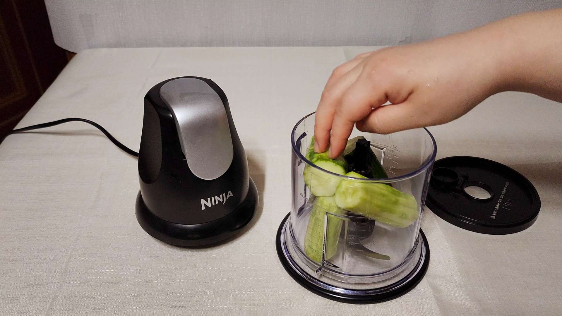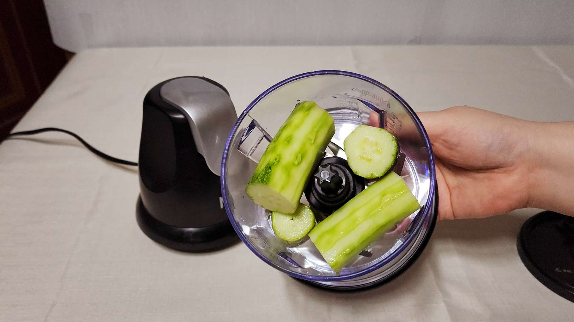 오이 1개는 큼직하게 잘라 믹서기에 넣고 다져줍니다.
