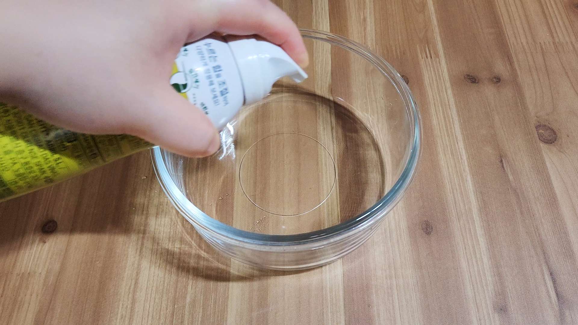 내열 용기에 올리브유를 골고루 발라줍니다.