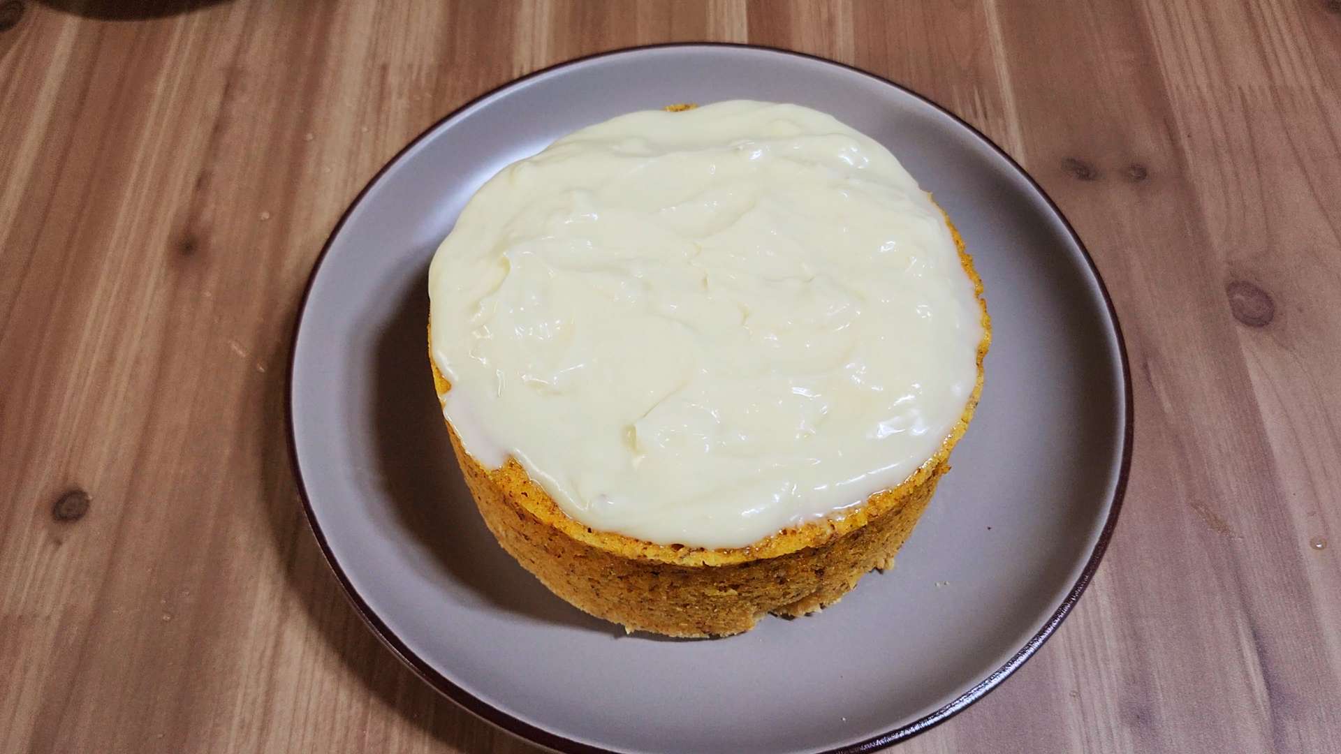 당근케이크에 위에 레몬크림치즈를 펴 발라줍니다.