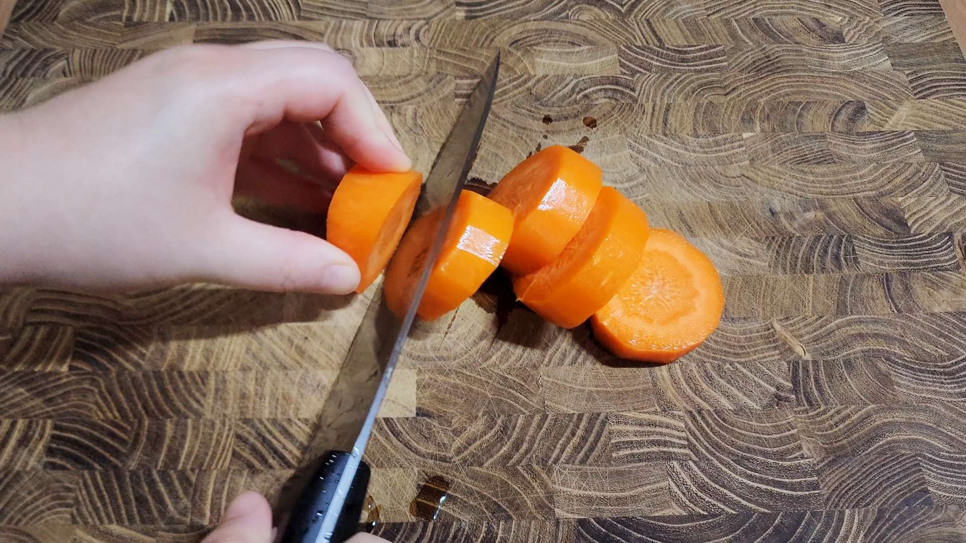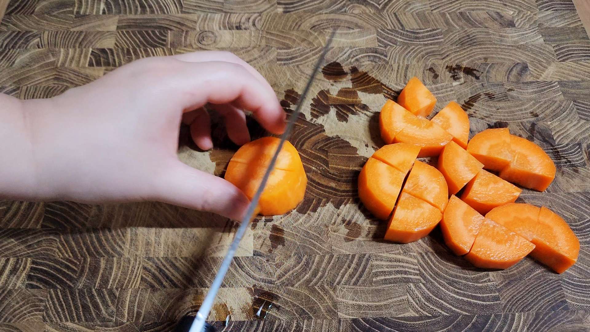 당근은 원형 슬라이스로 잘라 4등분 해줍니다.
