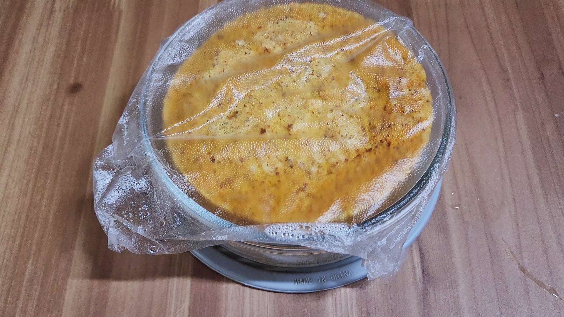 랩을 씌우고 전자레인지에 8분 정도 돌려줍니다.