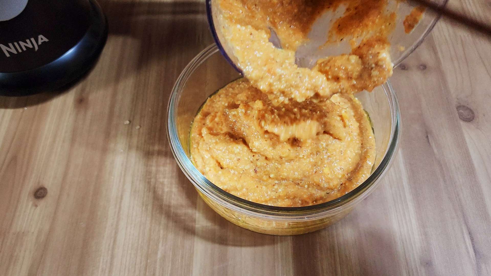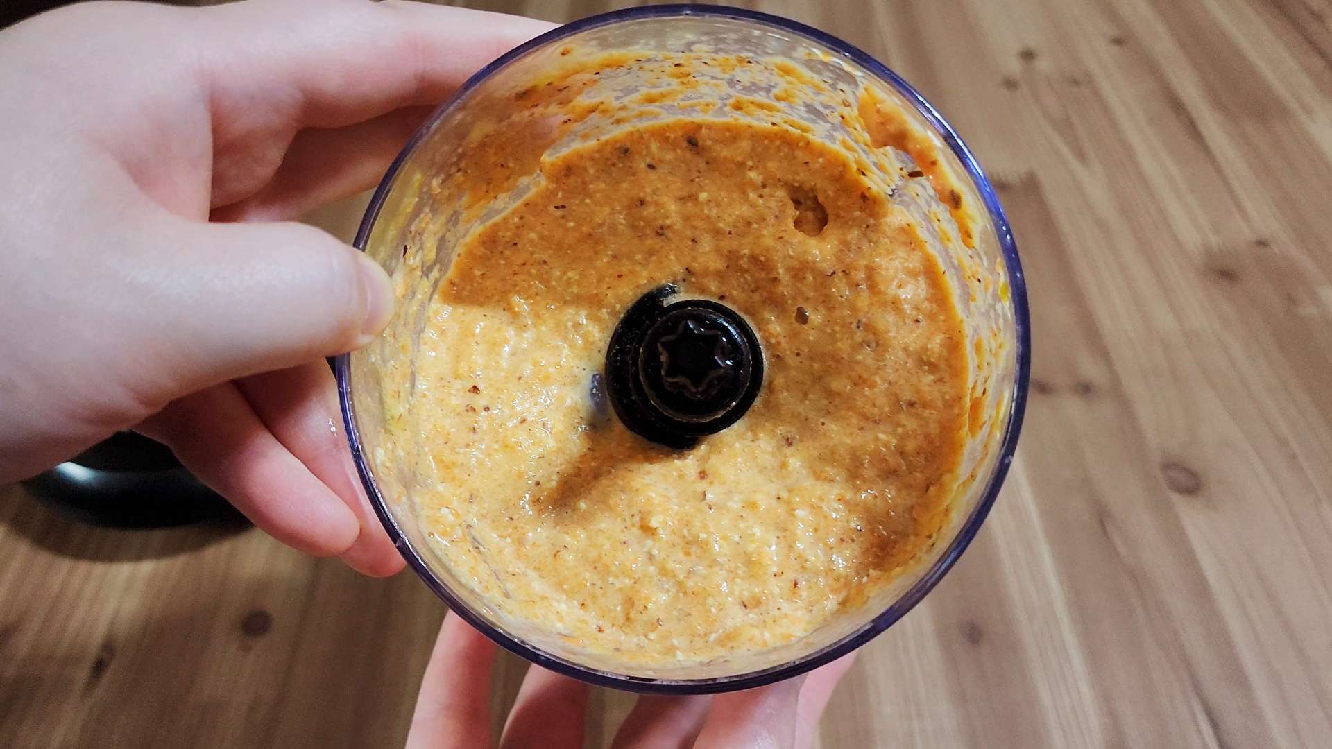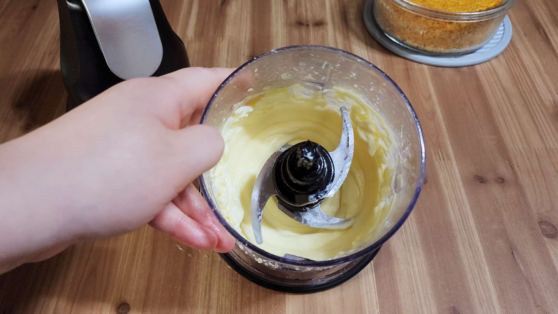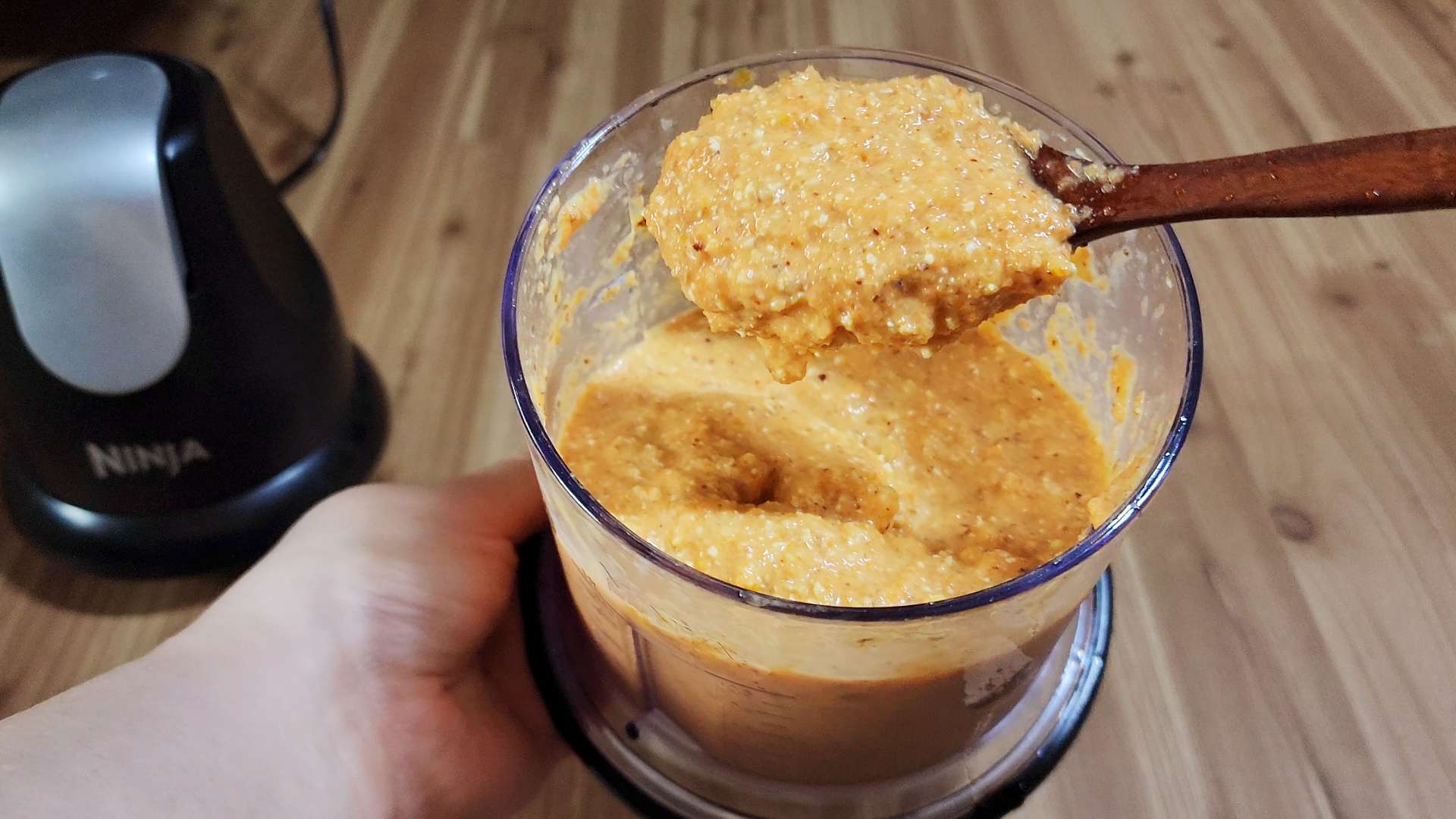 블렌더에 달걀 3개, 당근 150g, 아몬드 100g, 버터 1T, 유자청 1T 순으로 넣고 2분 정도 갈아줍니다.