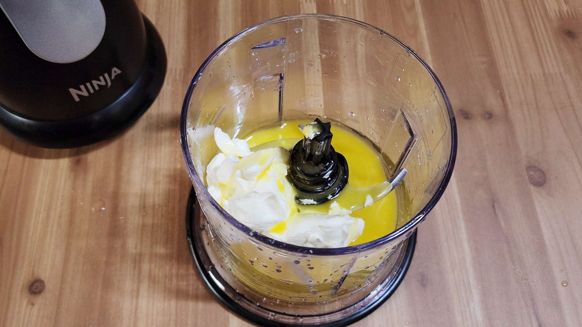블렌더에 크림치즈 3T, 녹인 버터 3T 넣고 섞어줍니다.