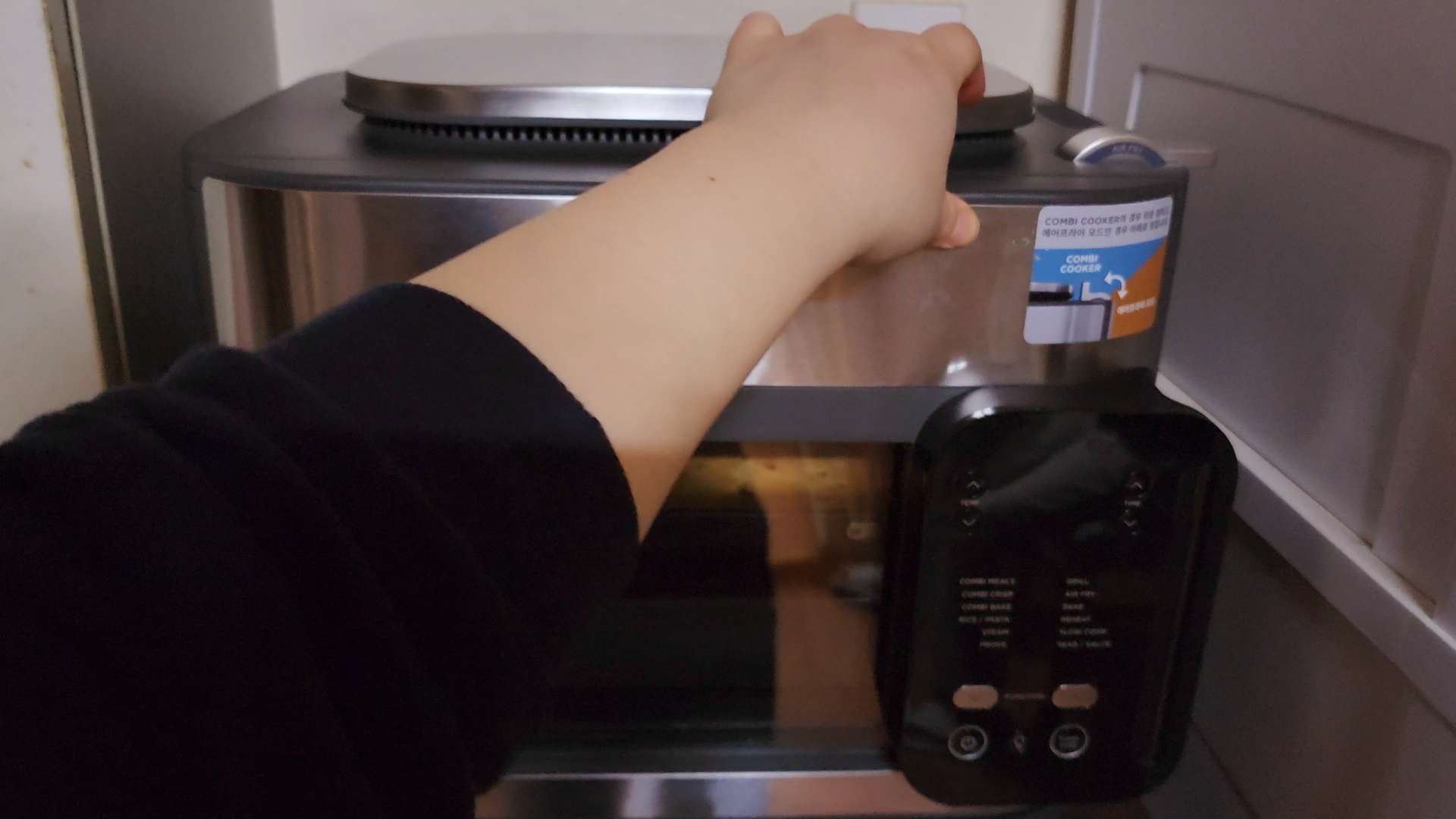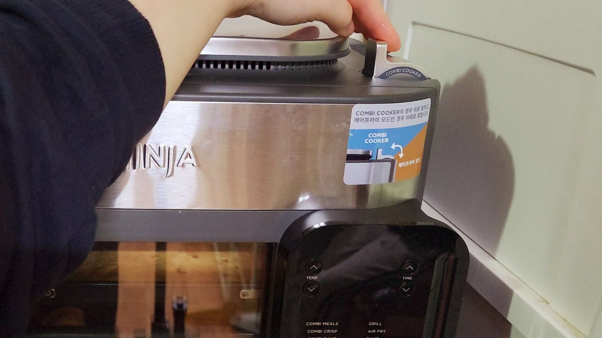 문을 닫고 윗쪽으로 올려 콤비 쿠커 모드로 맞춰주세요.