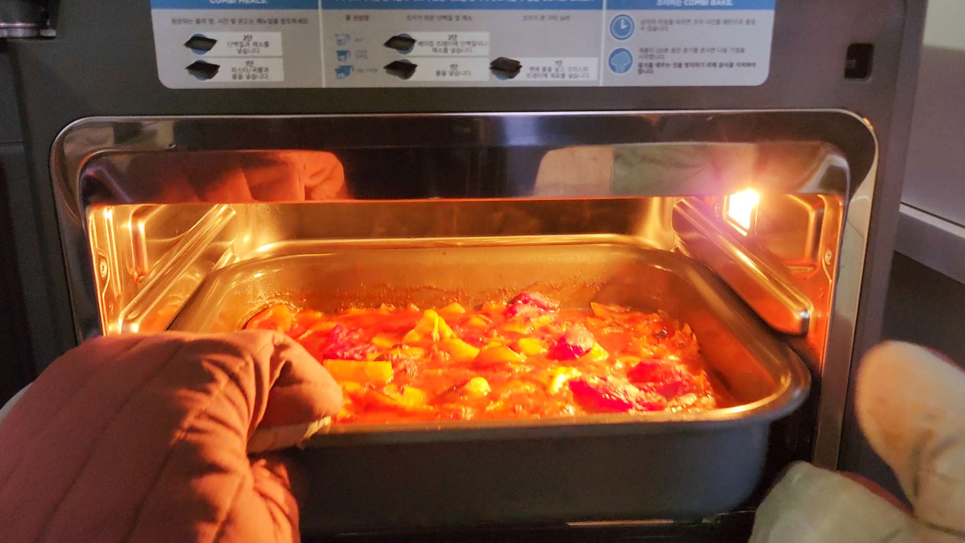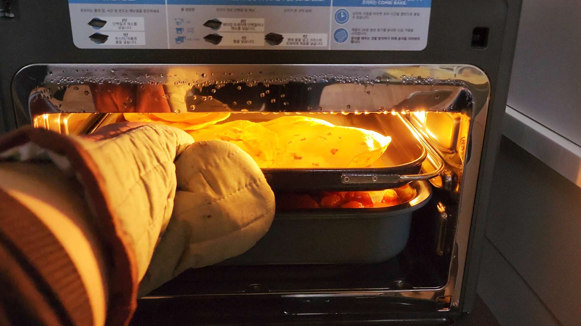 COMBI MEALS 모드를 선택하고 180도에서 25분으로 맞춰주세요.