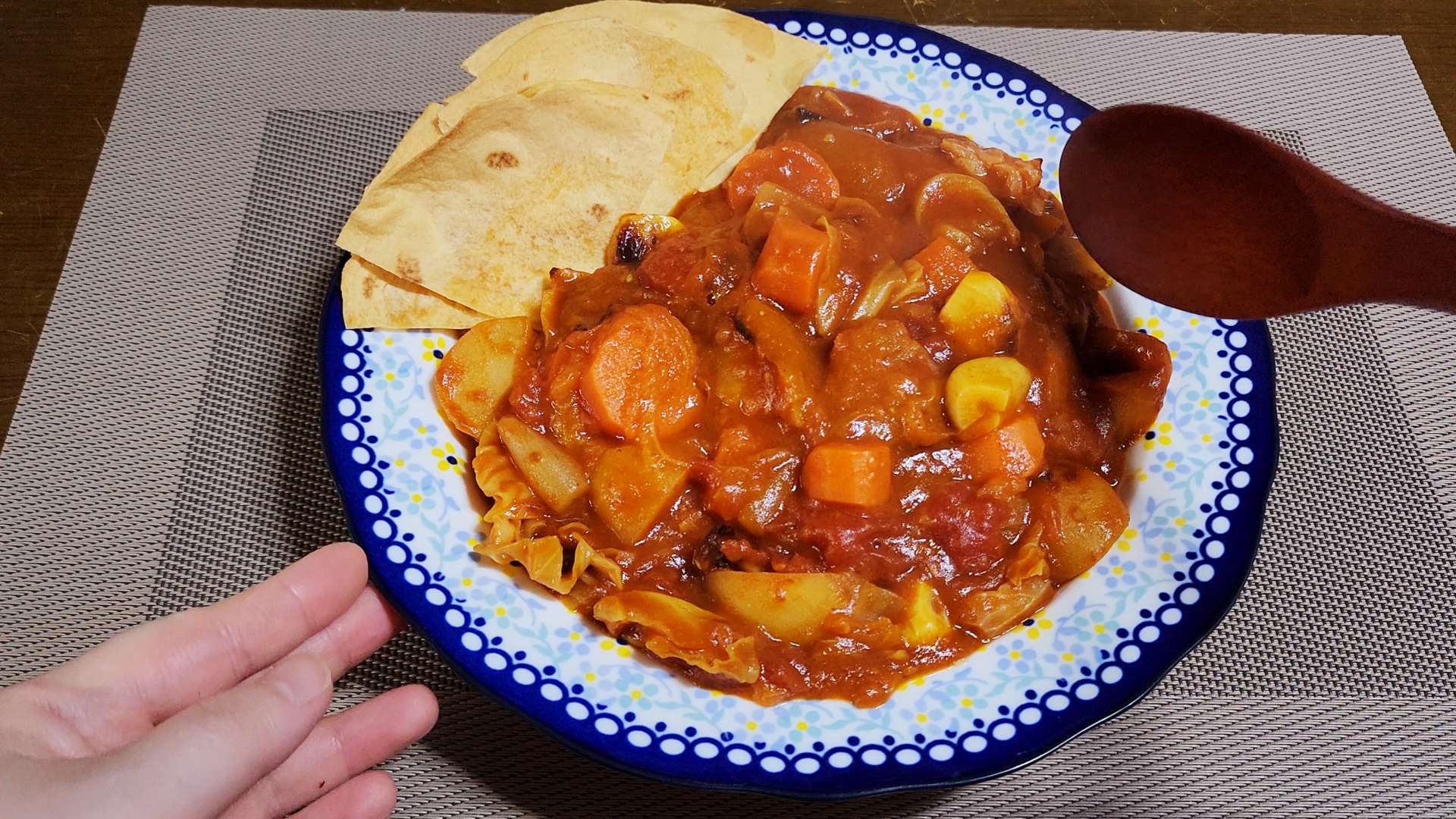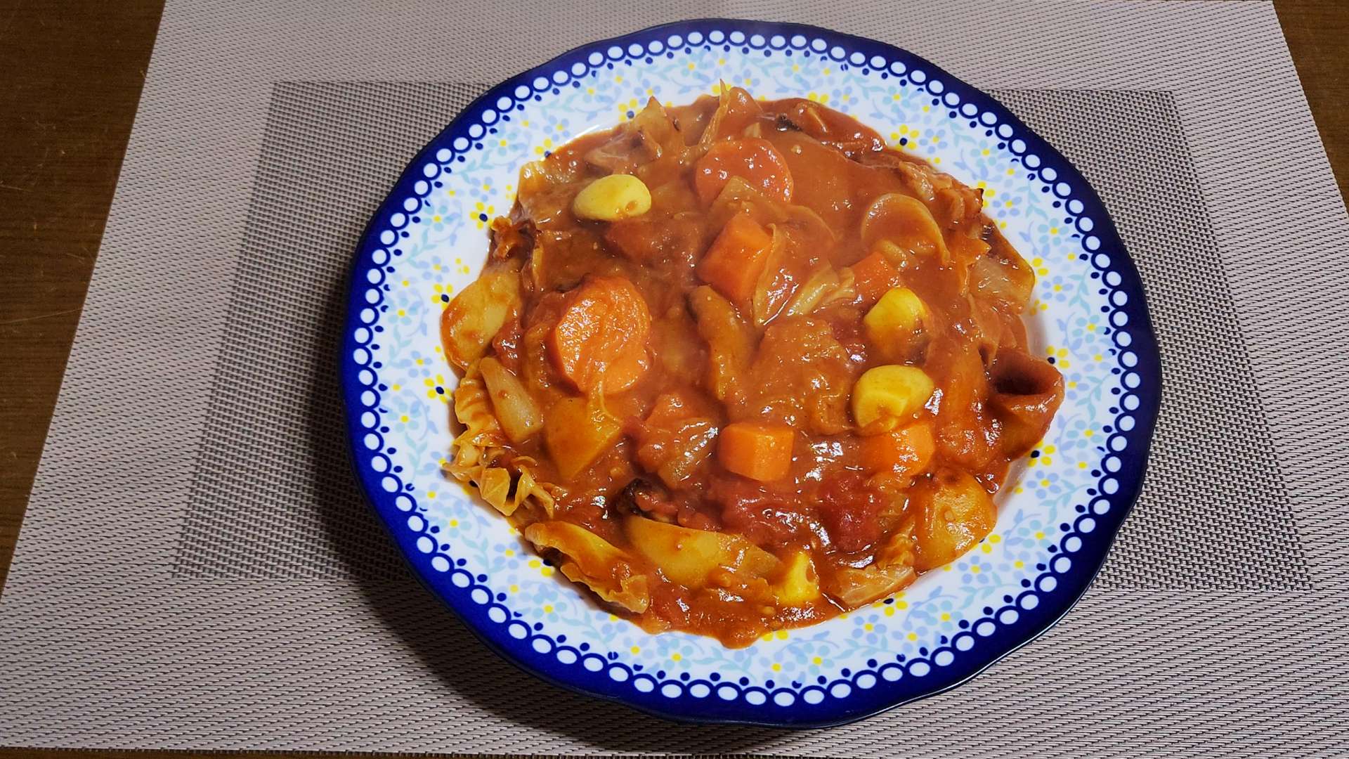 토마토 퓌레 1통, 고형카레 3조각을 넣어줍니다.