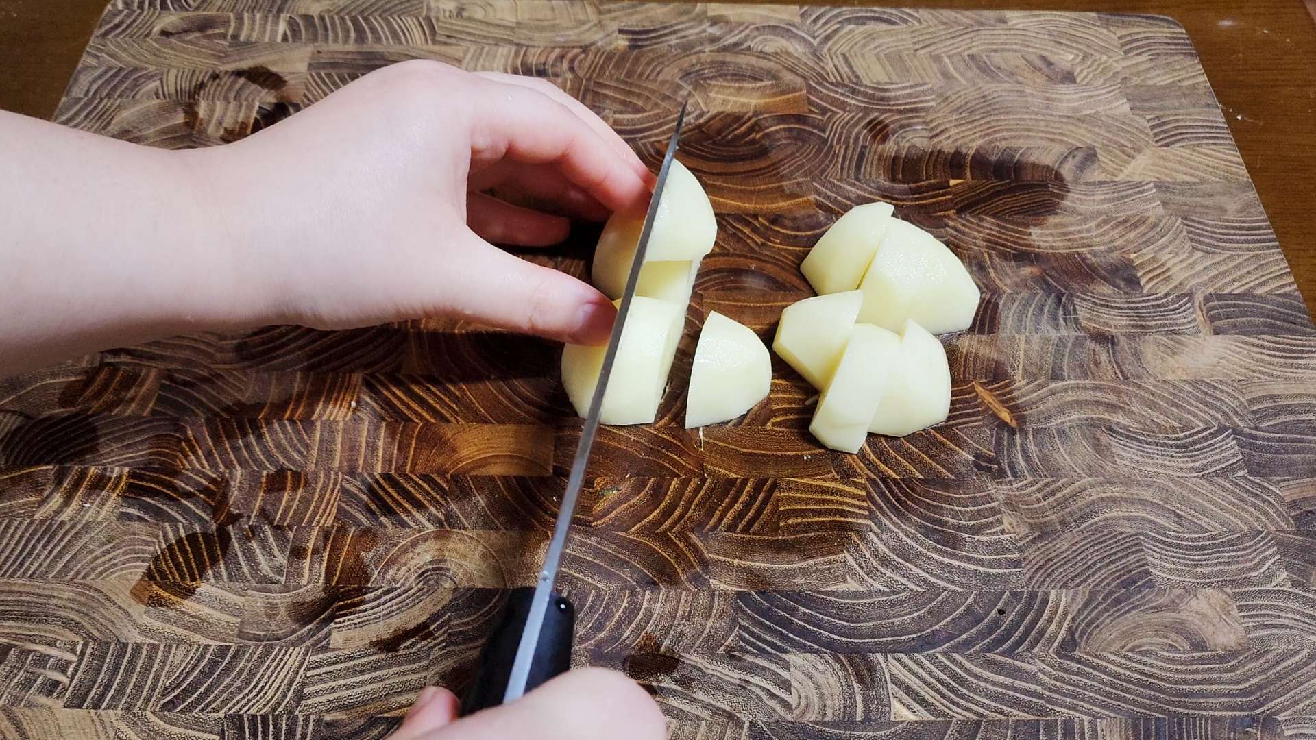 토마토는 꼭지를 자르고 4등분 해줍니다.