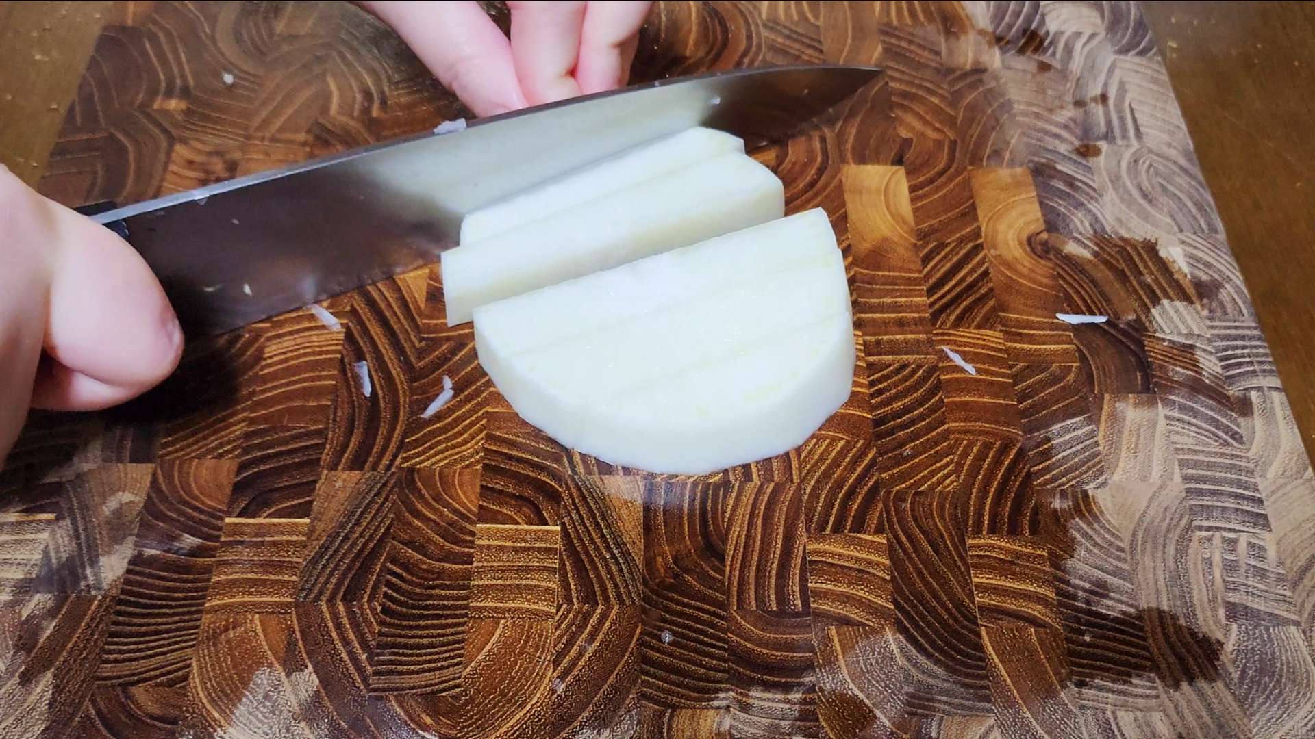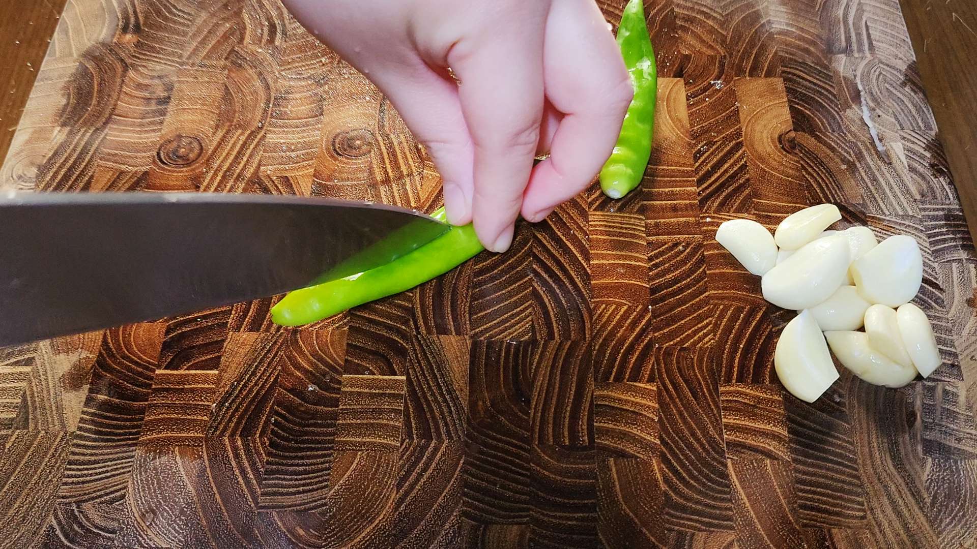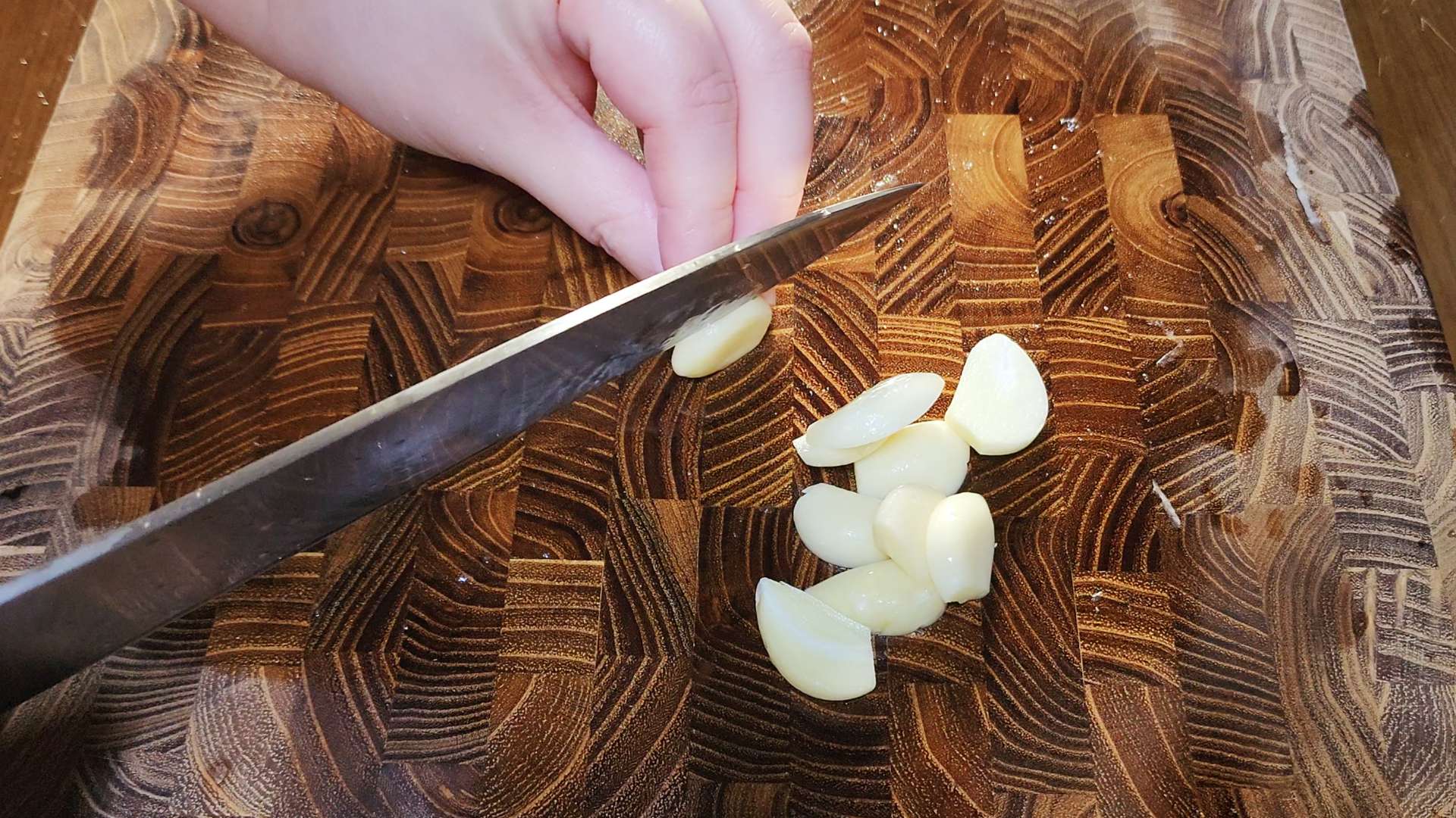 통마늘 5개는 편 썰어줍니다.
