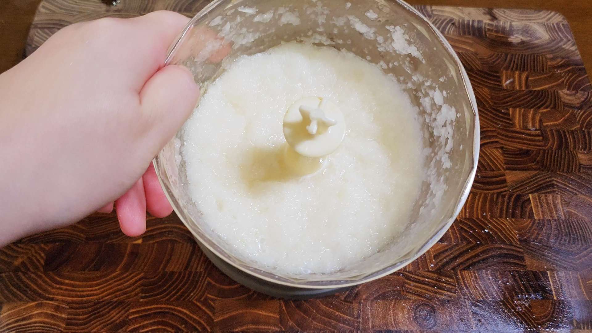 믹서기에 배, 양파를 넣고 곱게 갈아줍니다